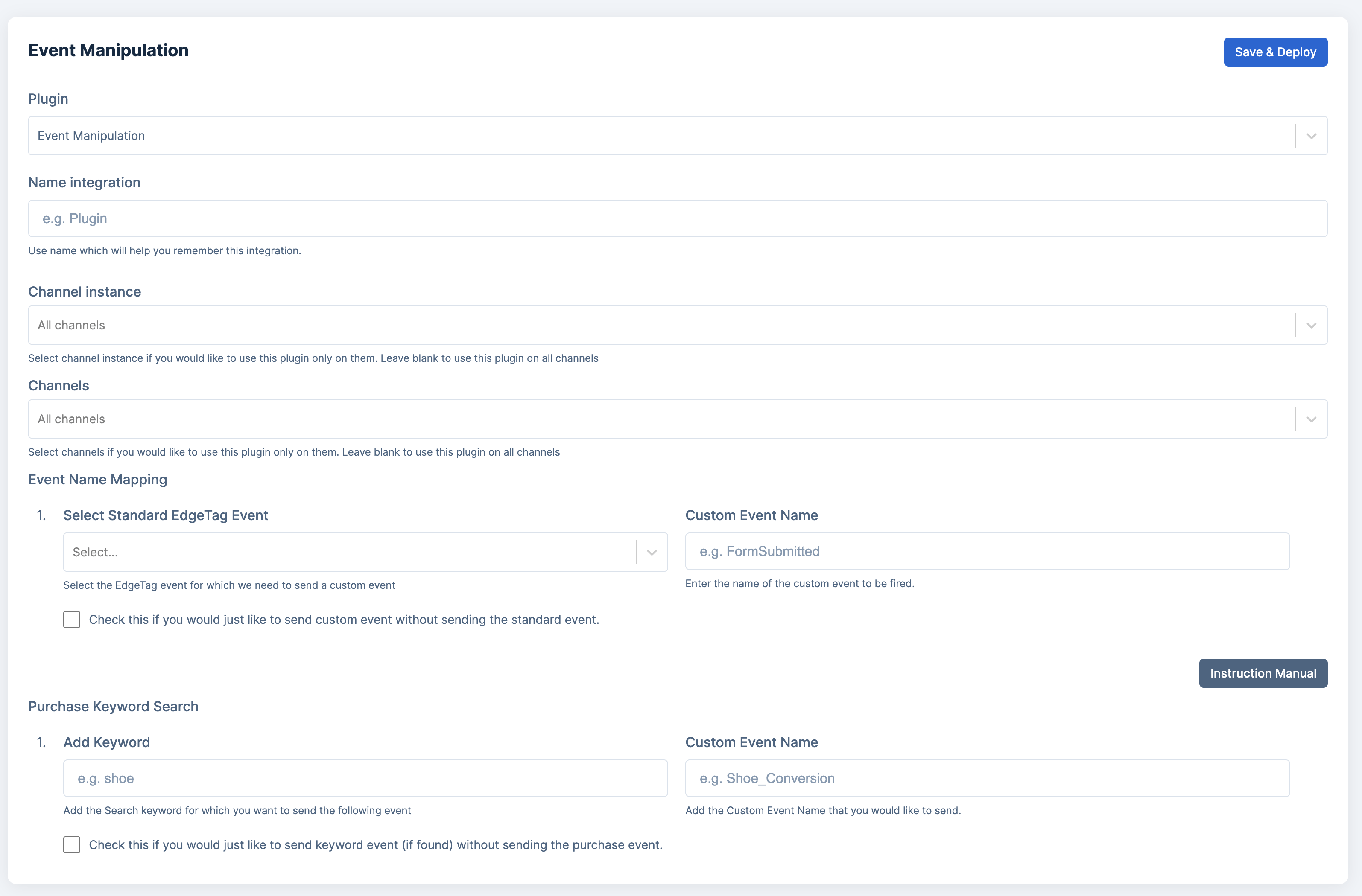 Different channels have different event requirements. The Event Manipulation plugin provides two core capabilities: